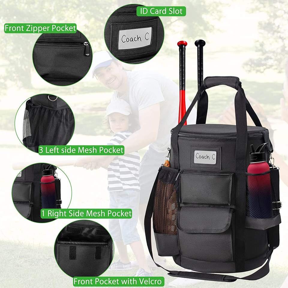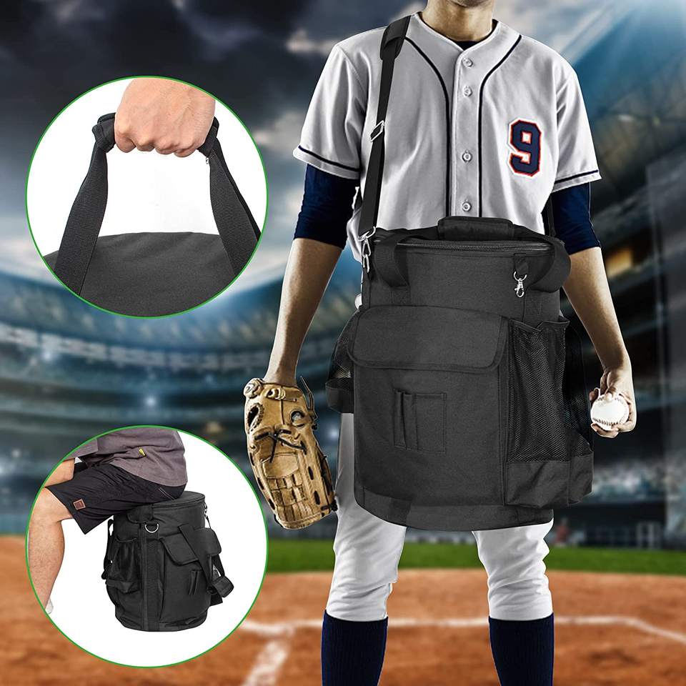 กระเป๋าทรงถังใส่เบสบอลกระเป๋าทรงถังพร้อมเบาะรองนั่งกระเป๋าไม้เบสบอลโค้ช