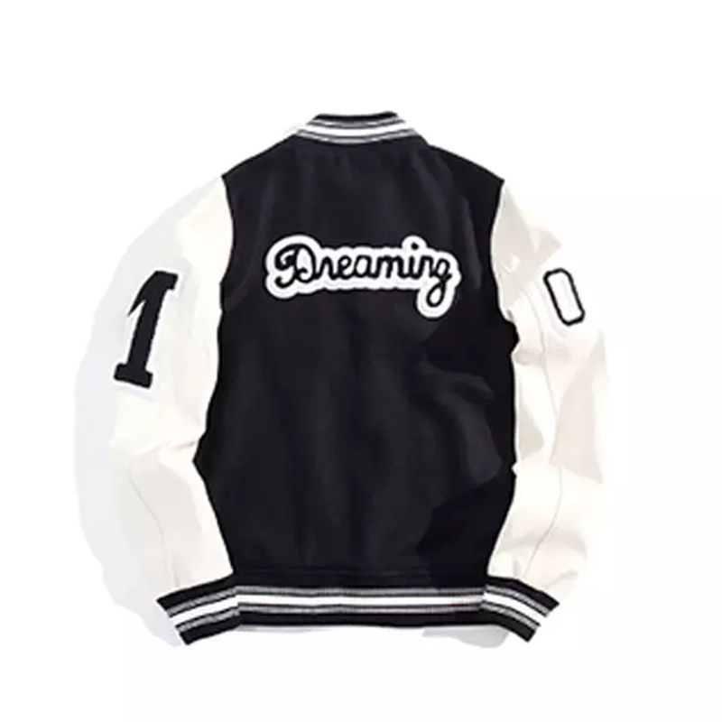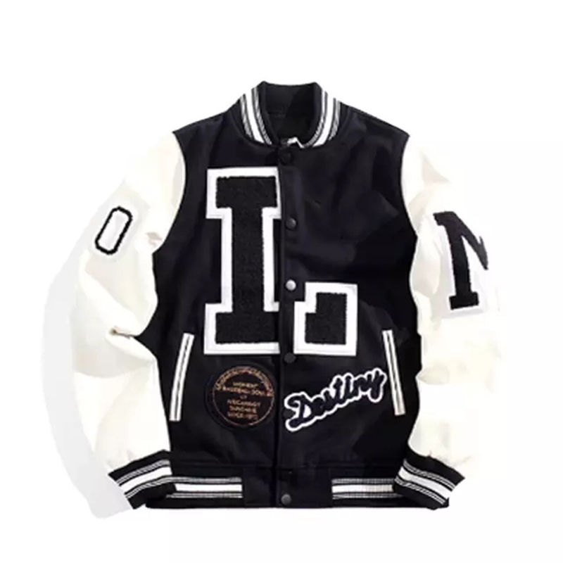 แจ็กเก็ตเบสบอลทีมวิทยาลัยแจ็คเก็ตบอมเบอร์ขนแกะสีดำแจ็คเก็ตหนังแขนเสื้อเบสบอลแจ็คเก็ตทีมเลตเทอร์แมน