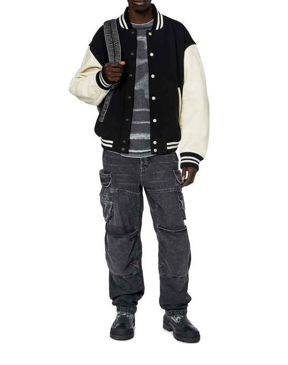 เสื้อแจ็คเก็ตเบสบอลลำลองสไตล์วาร์ซิตี้ สีเขียว-น้ำเงิน ไซส์ใหญ่สำหรับผู้ชาย