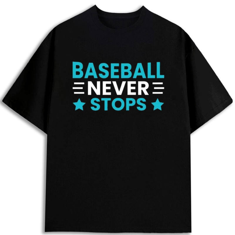 เสื้อยืดเบสบอลเนเวอร์สต็อปส์ผู้ชาย คอกลม ผ้าฝ้ายสีดำ ทรงปกติ 180GSM หนัก ผลิตในอเมริกา MBT-568008824