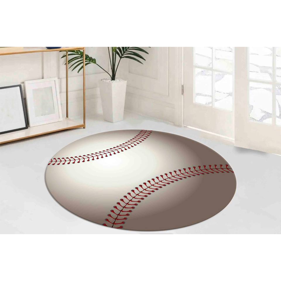 พรมลายเบสบอล: ลายวงกลม, สำหรับห้องเด็กผู้ชาย, พรมพิมพ์ลายซักเครื่องได้, พรมบางแบบไม่ทอ