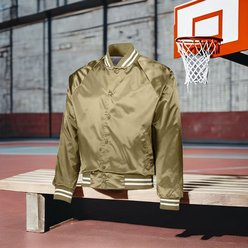เสื้อแจ็คเก็ตเบสบอลผ้าซาตินถักแบบระบายอากาศ สไตล์อเมริกันสตรีทแวร์ สำหรับฤดูหนาว แบบนักศึกษา สามารถปักโลโก้ได้