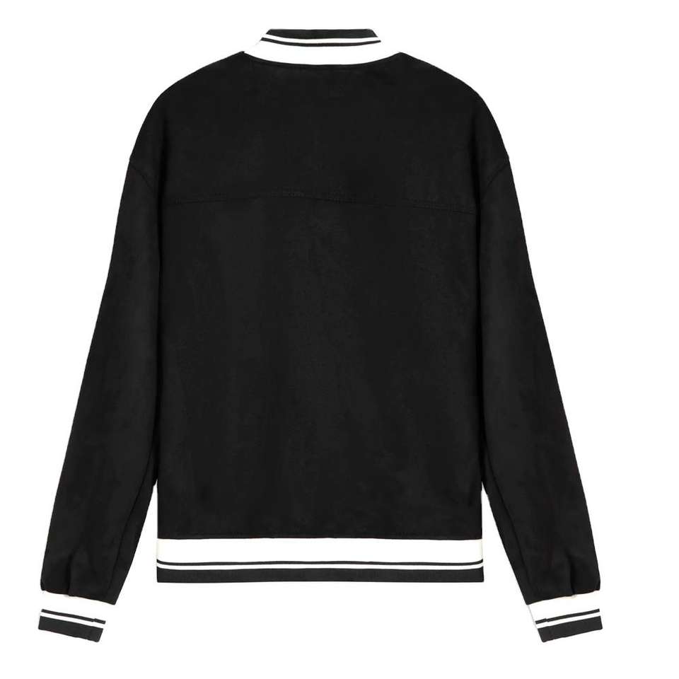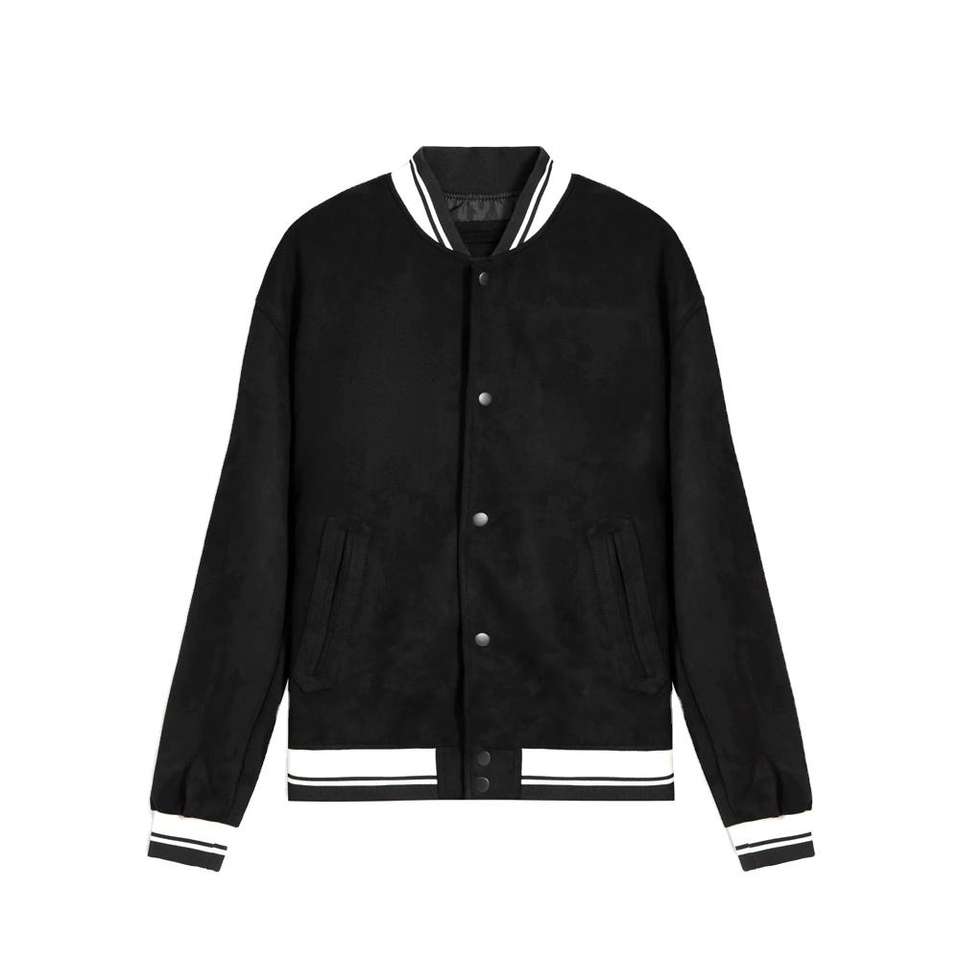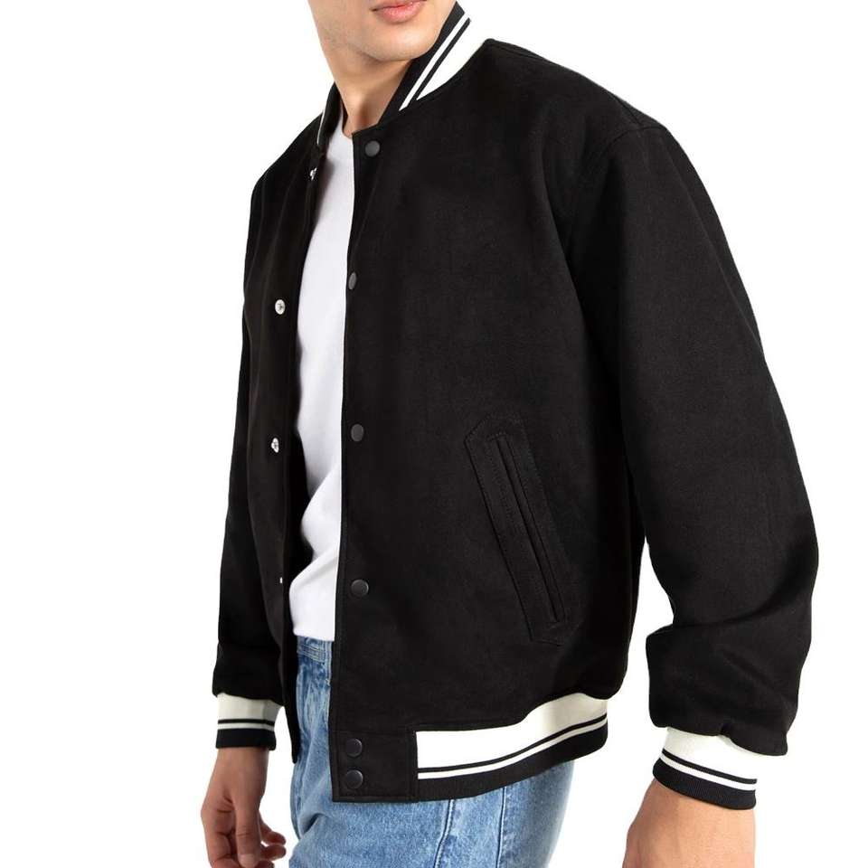 เสื้อแจ็คเก็ตเบสบอลโรงเรียน/วิทยาลัยสีดำ แขนทำจากขนสัตว์แท้ ขายดีประจำปี 2026