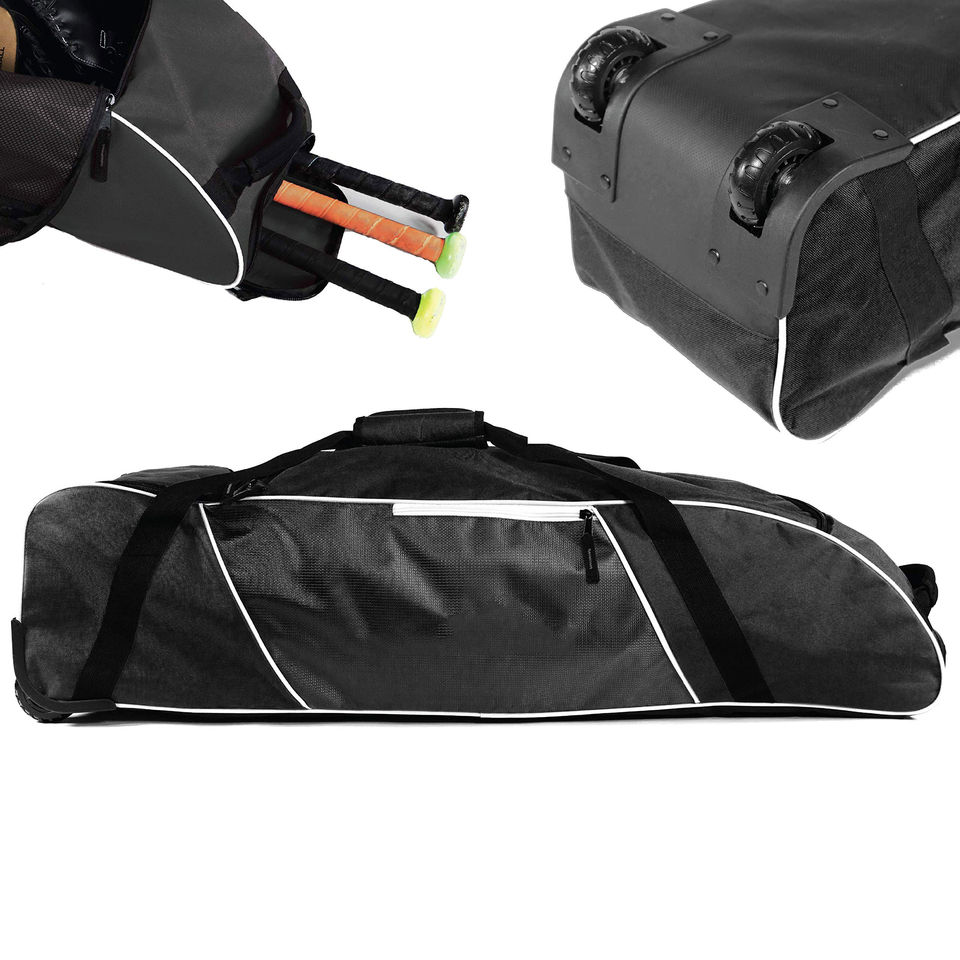 กระเป๋าเบสบอล ซอฟต์บอล แบบมีล้อ ทันสมัย ทนทาน เป็นมิตรกับสิ่งแวดล้อม กันน้ำ ลดแรงกระแทก ปิดด้วยซิป รับสั่งทำพิเศษ ใส่ไม้เบสบอลได้ 4 อัน มีช่องใส่ของหลายช่อง
