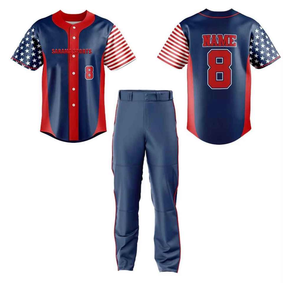 ชุดยูนิฟอร์มเบสบอลสำหรับทีมโรงเรียนและวิทยาลัย เสื้อเบสบอลแบบกำหนดเองพร้อมกางเกงเอวยางยืด ชุดยูนิฟอร์มเบสบอลแบบซับลิเมชั่น