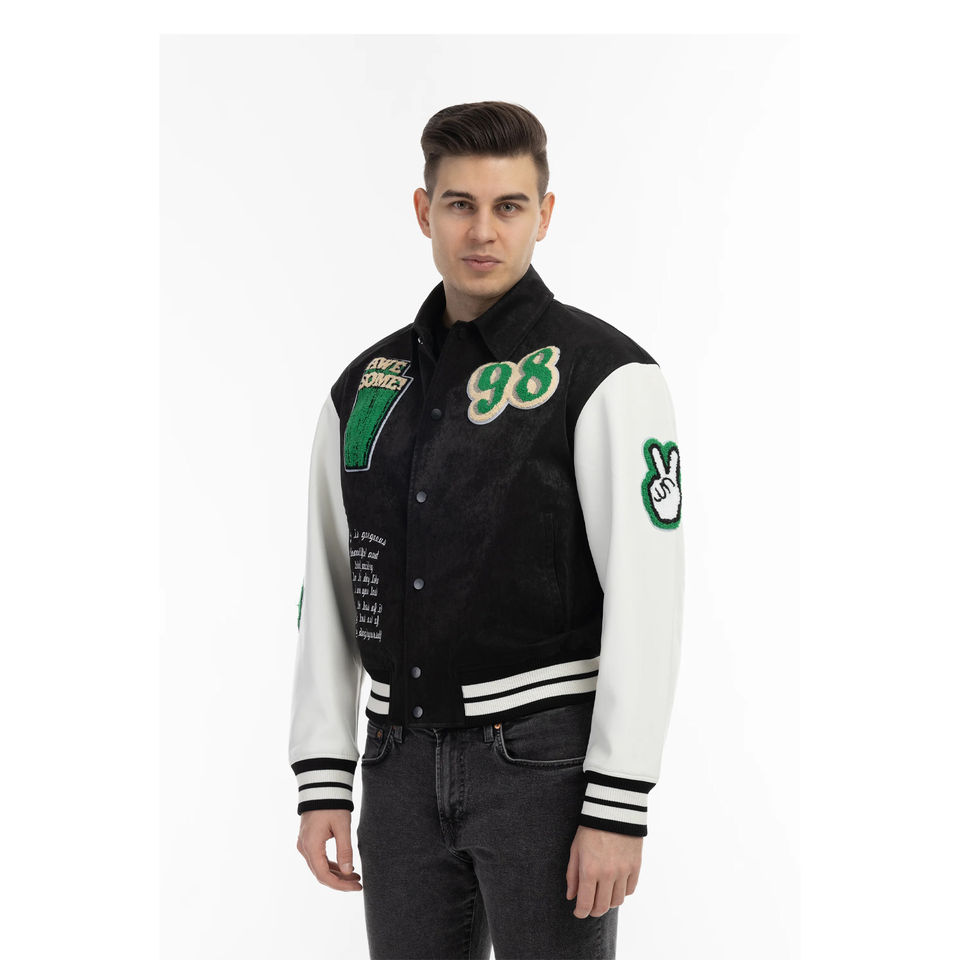 เสื้อแจ็กเก็ตเบสบอลสำหรับผู้ชายเสื้อแจ็กเก็ตบอมเบอร์ปักลายอะนิเมะ