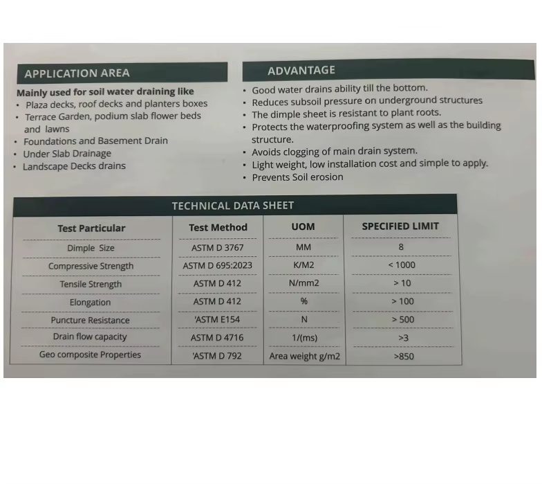 แผ่นป้องกันการรั่วซึมชั้นใต้ดินมีโครงสร้างหลักเป็นรอยบุ๋มและหนา0.65มม. สำหรับระบบกำแพงกันดินซัพพลายเออร์อินเดีย
