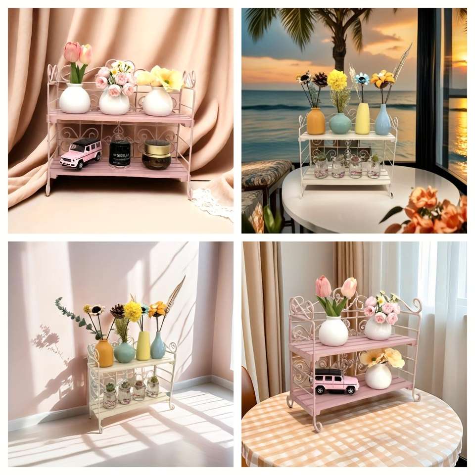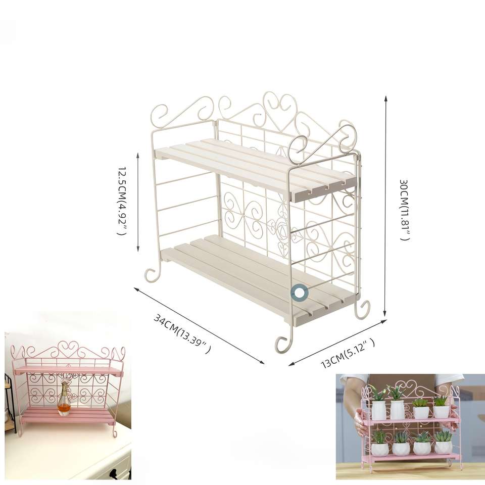 ที่เก็บของพับได้2ชั้นอุปกรณ์จัดระเบียบสำหรับห้องนอนห้องนั่งเล่นที่เก็บของในสวนโลหะพร้อมใช้งาน