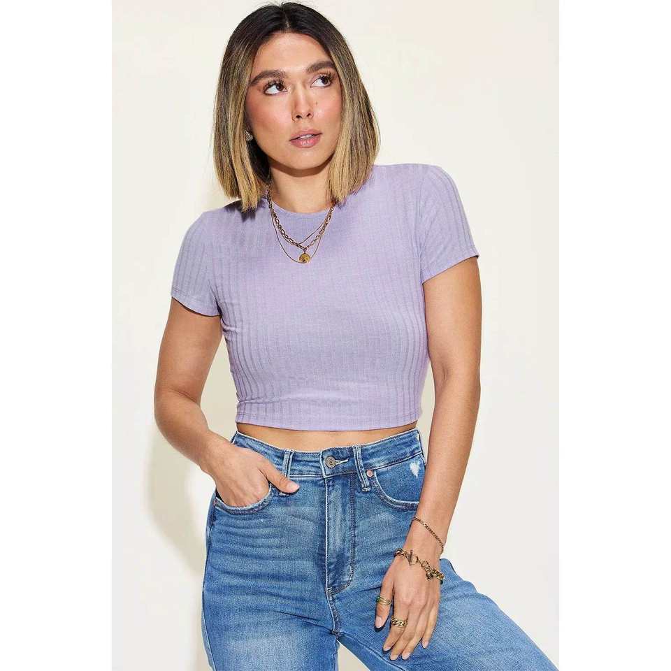 เสื้อกล้ามแขนสั้นคอกลมแบบริบเบอร์ รุ่นเบสิค เบ สำหรับผู้หญิง สีน้ำตาลเข้ม น้ำหนัก 80 กรัม