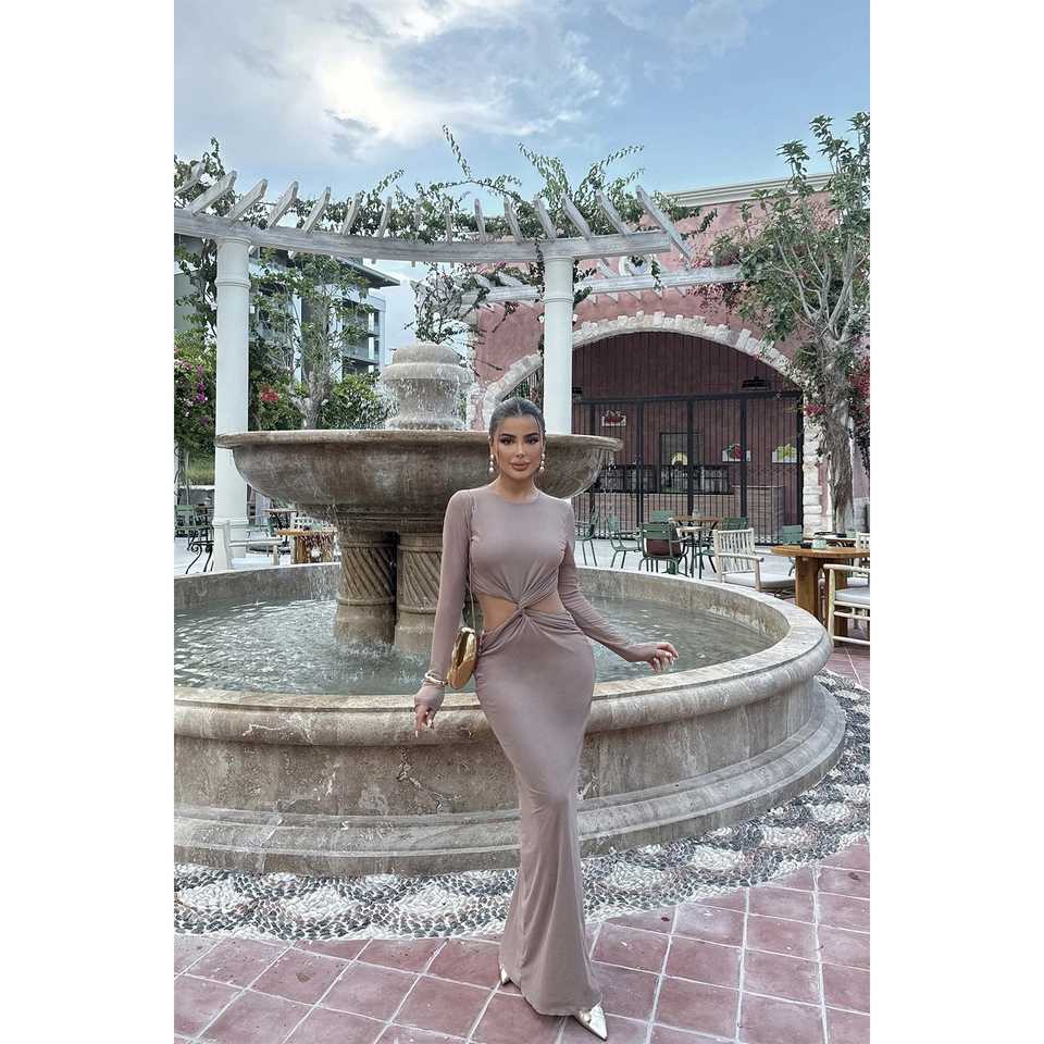 ชุดแต่งงานทรงเอไลน์สีเบจพื้นฐาน ยาวประดับเพชรที่เอวทรงเอ็มไพร์ ไซส์ XL ผ้าโพลีเอสเตอร์ผสมคอตตอน ลายพิมพ์ลายดอกไม้ฤดูใบไม้ผลิ