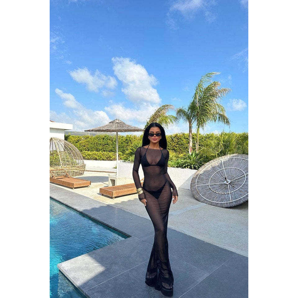 ชุดคลุมชุดว่ายน้ำสีดำแบบเรียบง่ายทันสมัย
