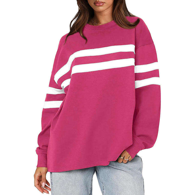 เสื้อสเวตเตอร์ลายทางสีขาวสีดำแบบคลาสสิกเสื้อมีฮู้ดทรงหลวมไหล่ลูกเรือสำหรับผู้หญิง