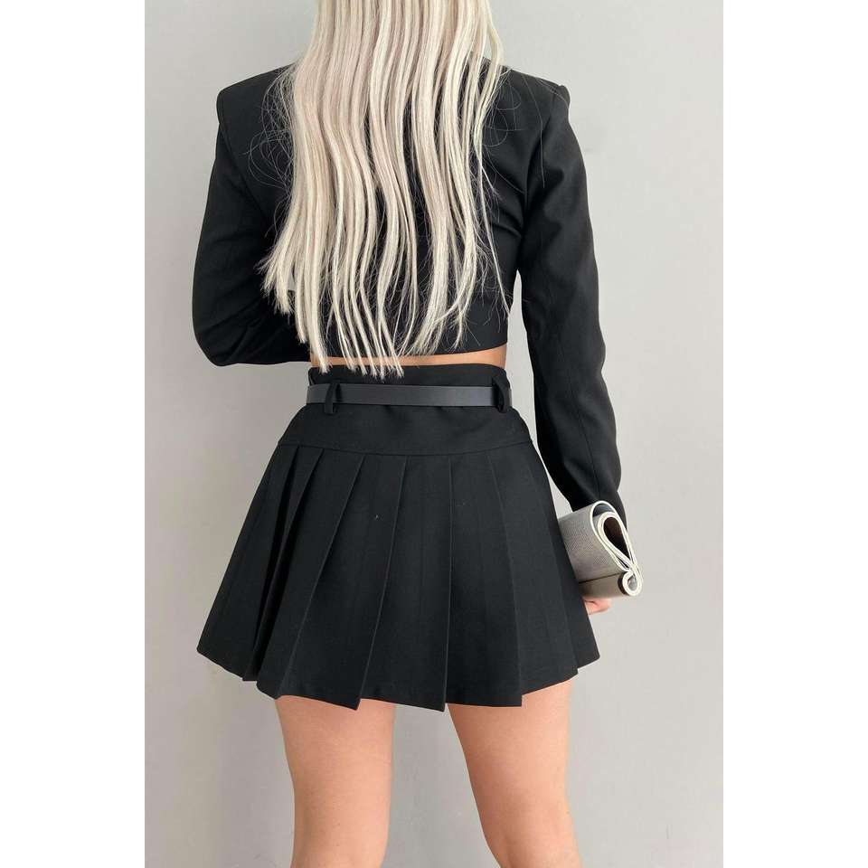 Basic Collection Pleated T-Shirt Skirt with Belt Detail
