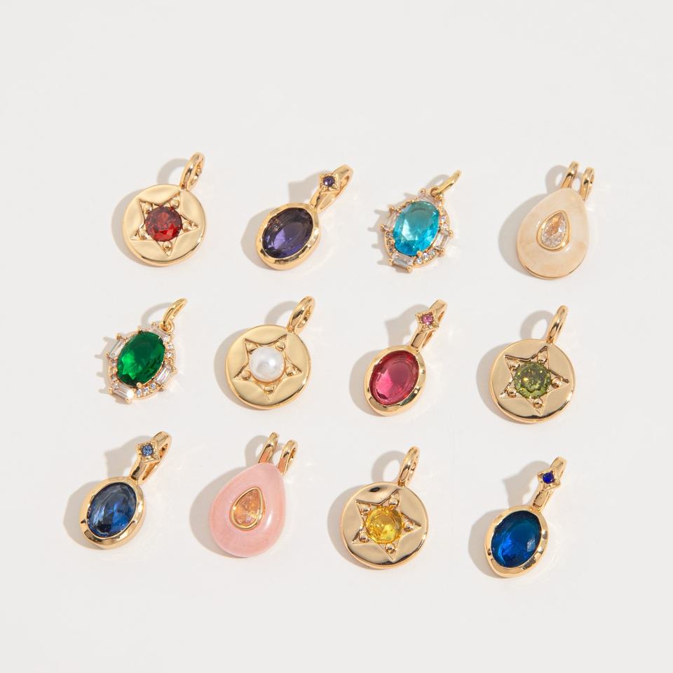 สร้อยคอจี้รูปผีเสื้อประดับพลอยประจำเดือนเกิด 12 ราศี ทำจากสแตนเลสแบบ DIY พร้อมสร้อยหลวมสีทอง 18K ชุบสูญญากาศ