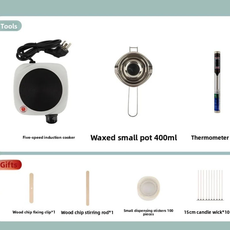 ชุดเครื่องมือละลายขี้ผึ้งพื้นฐานสำหรับขี้ผึ้งถั่วเหลืองพาราฟินพร้อมเครื่องวัดอุณหภูมิหม้อสำหรับคริสต์มาส