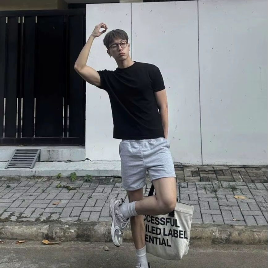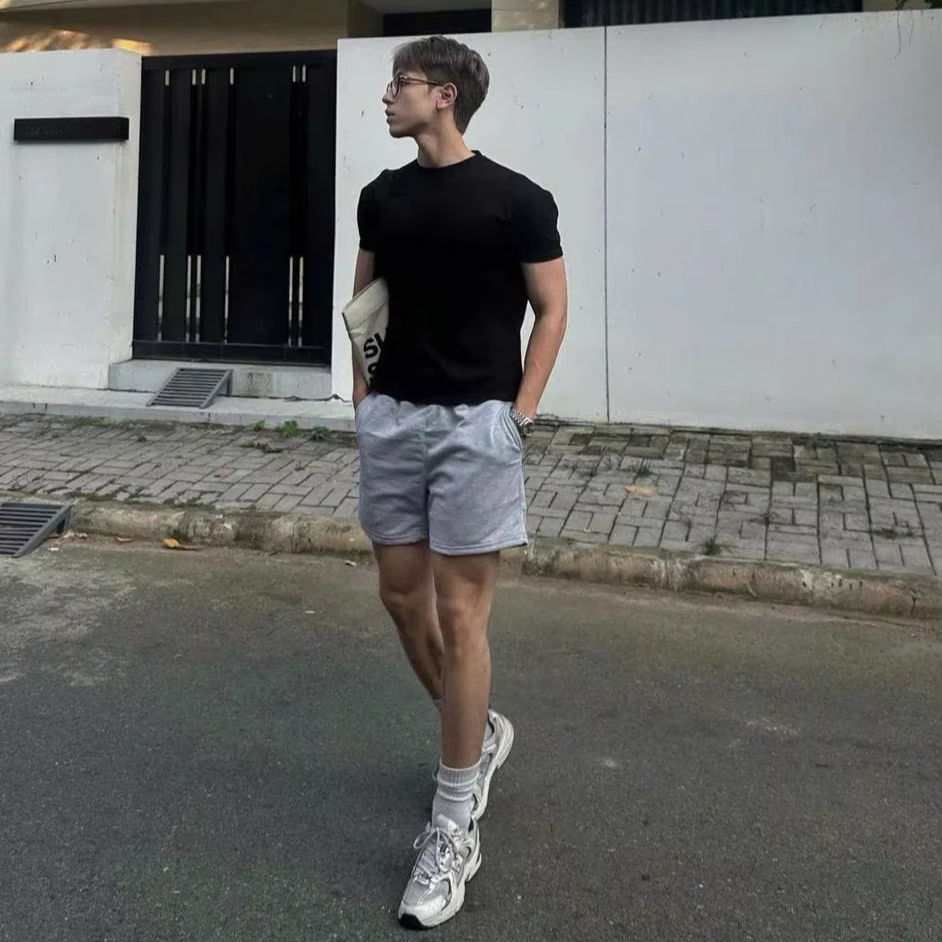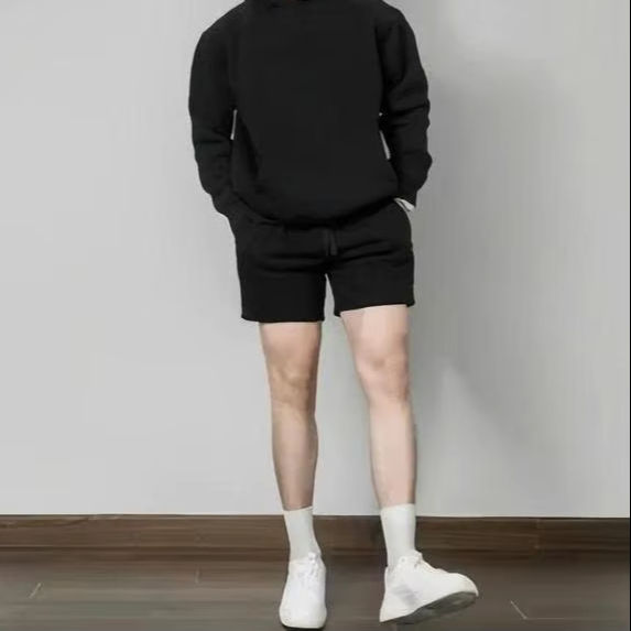 กางเกงขาสั้นกีฬาของผู้ชายแบบพื้นฐานกางเกงขาสั้นผ้าขนแกะ2ชั้นใส่สบายสไตล์เรียบง่าย