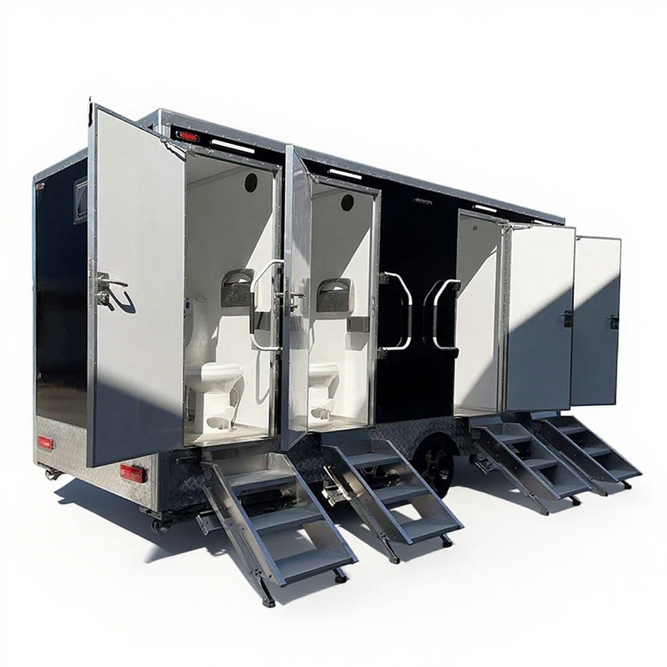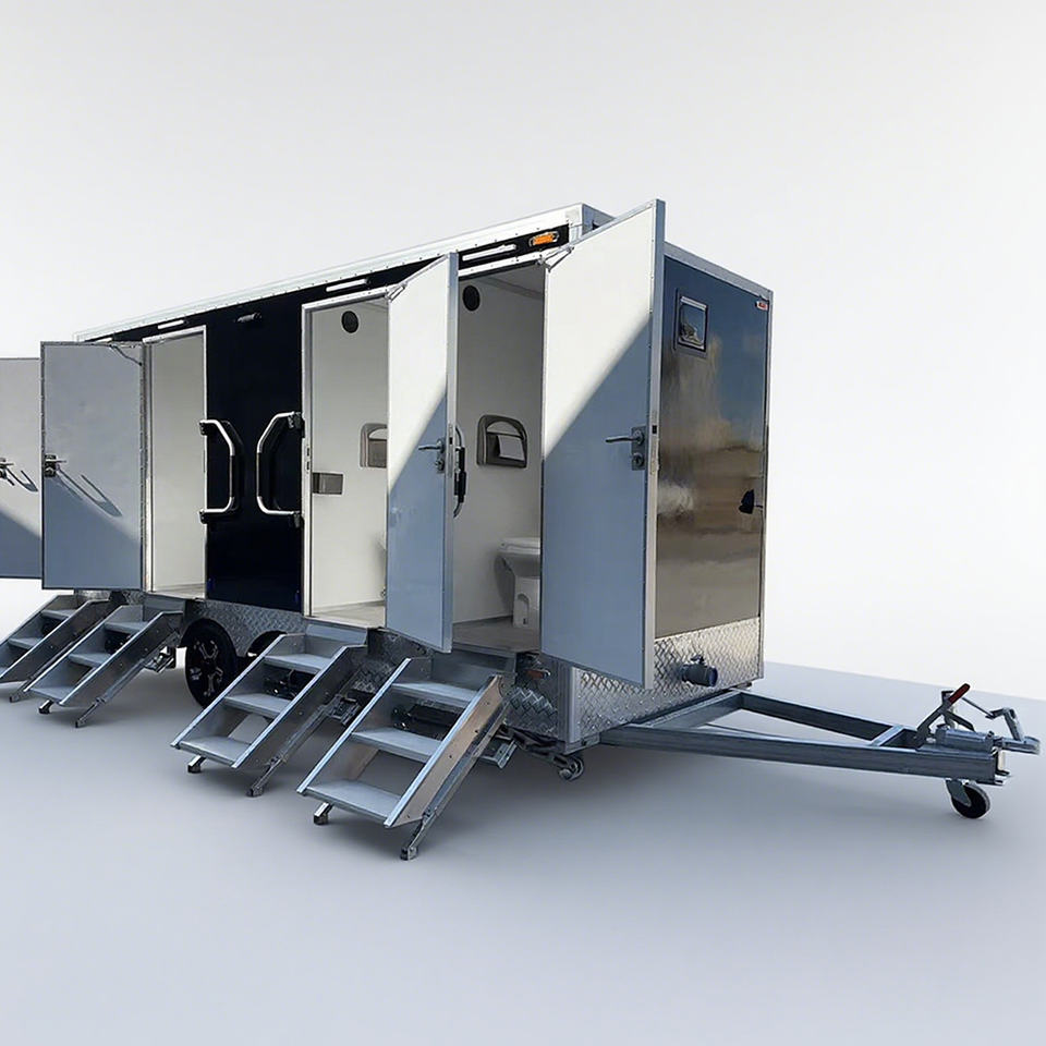 รถพ่วงห้องน้ำเคลื่อนที่แบบพื้นฐาน โครงสร้างแข็งแรง ทนทาน สำหรับใช้งานกลางแจ้งในสภาพแวดล้อมที่มีความต้องการใช้งานหนัก
