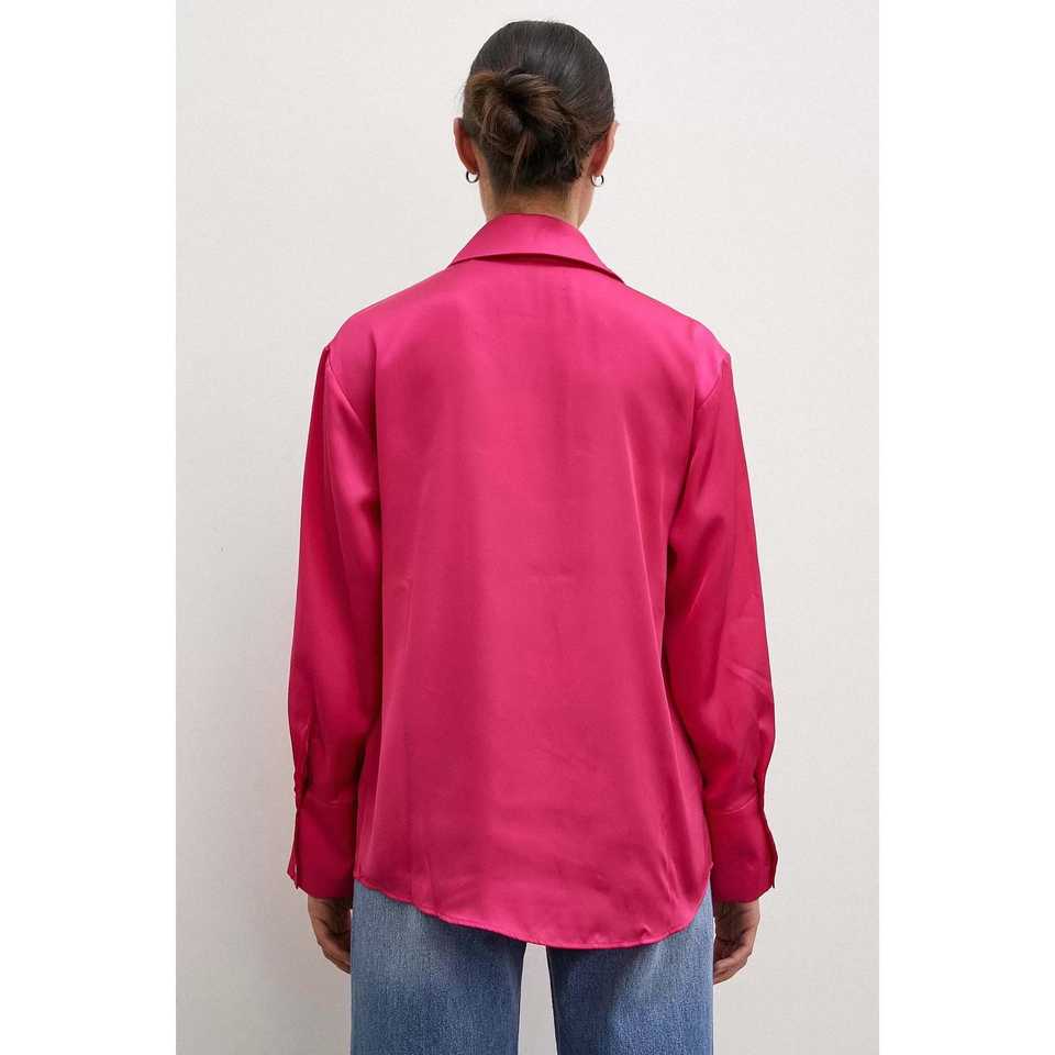 เสื้อเชิ้ตผ้าซาตินสีบานเย็นแบบคลาสสิกสำหรับผู้หญิง ติดกระดุม ใส่ได้ทุกวัน
