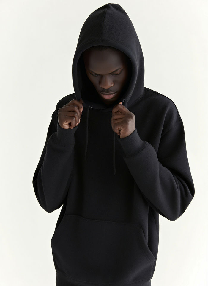 เสื้อฮู้ดดี้พื้นฐานสีพื้นแบบกำหนดเอง ชุดเสื้อฮู้ดผ้าฟลีซ แขนเสื้อแบบดรอปโชว์เดอร์ ทรงหลวมอเนกประสงค์ พิมพ์ลายสำหรับฤดูหนาว