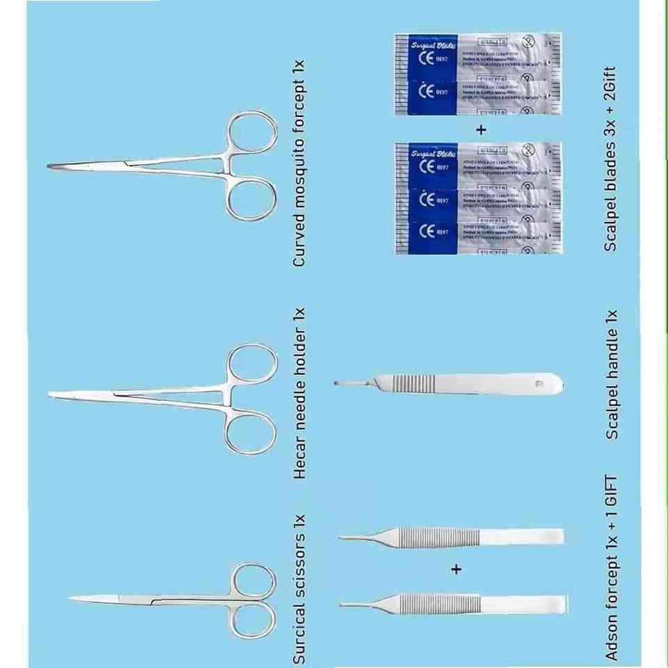 ชุดเครื่องมือผ่าตัดพื้นฐานชุดเย็บแผลผ่าตัดสแตนเลสสำหรับการฝึกสุขภาพแบบแมนนวลสำหรับโรงเรียนแพทย์