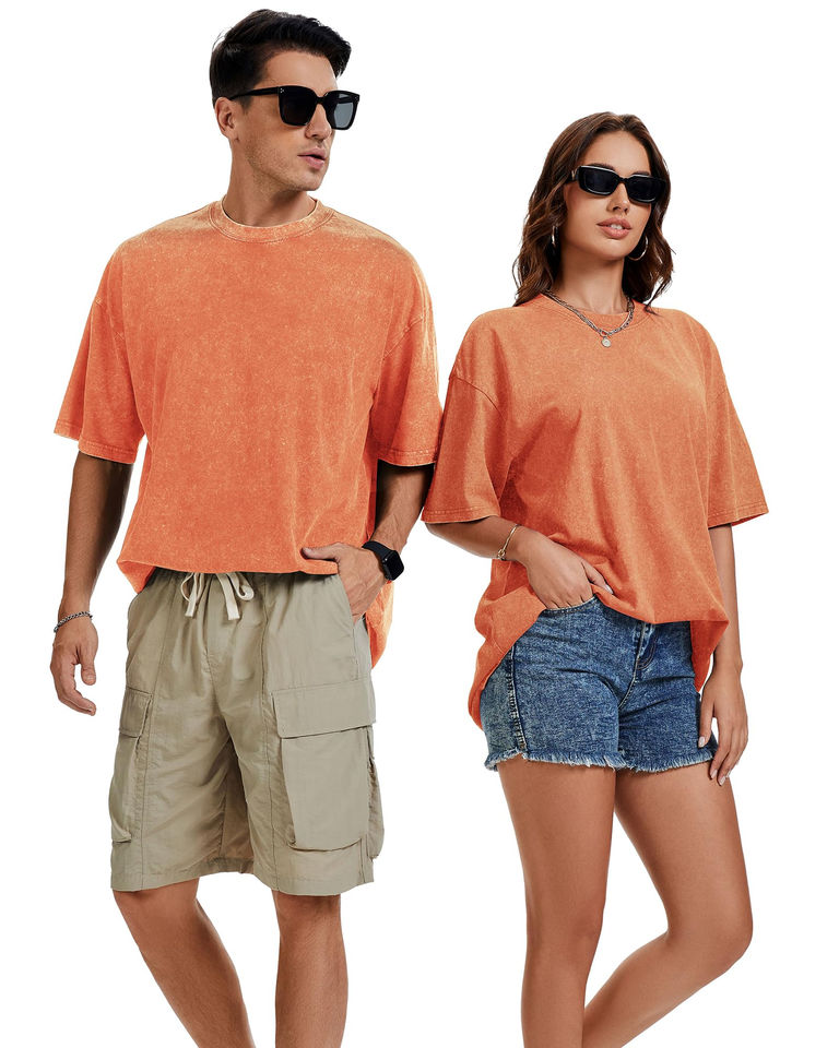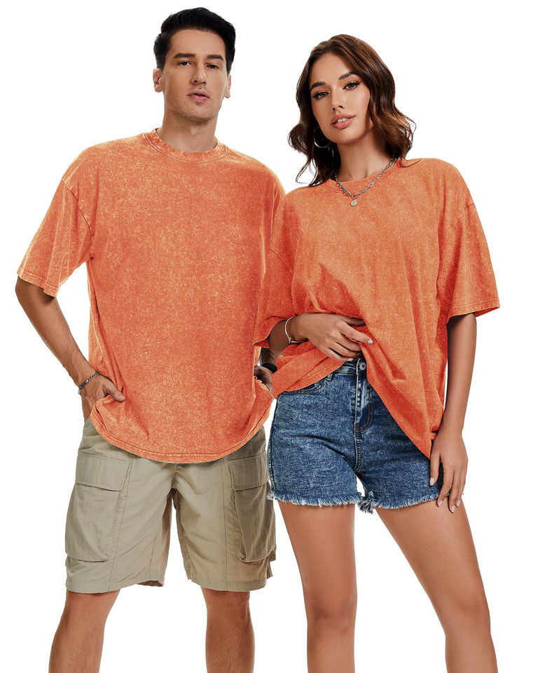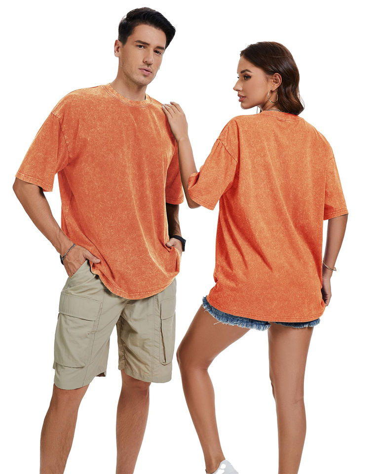 เสื้อยืดเบสิคทรงโอเวอร์ไซส์ ผ้าฟอกสี 280 กรัม คอเสื้อแบบดรอปโชว์เดอร์ เสื้อเบสิคผู้ชาย วินเทจ แขนสั้น สีพื้น เสื้อยูนิเซ็กส์