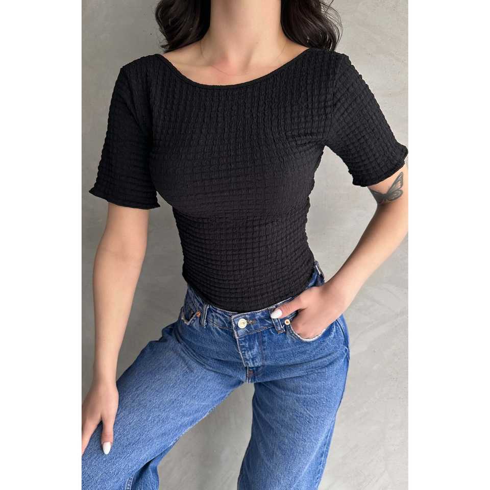 เสื้อถักลายหยักพื้นฐานสำหรับผู้หญิง แขนสั้น ลำลอง ใส่ได้ทุกฤดู สีแดงอ่อน