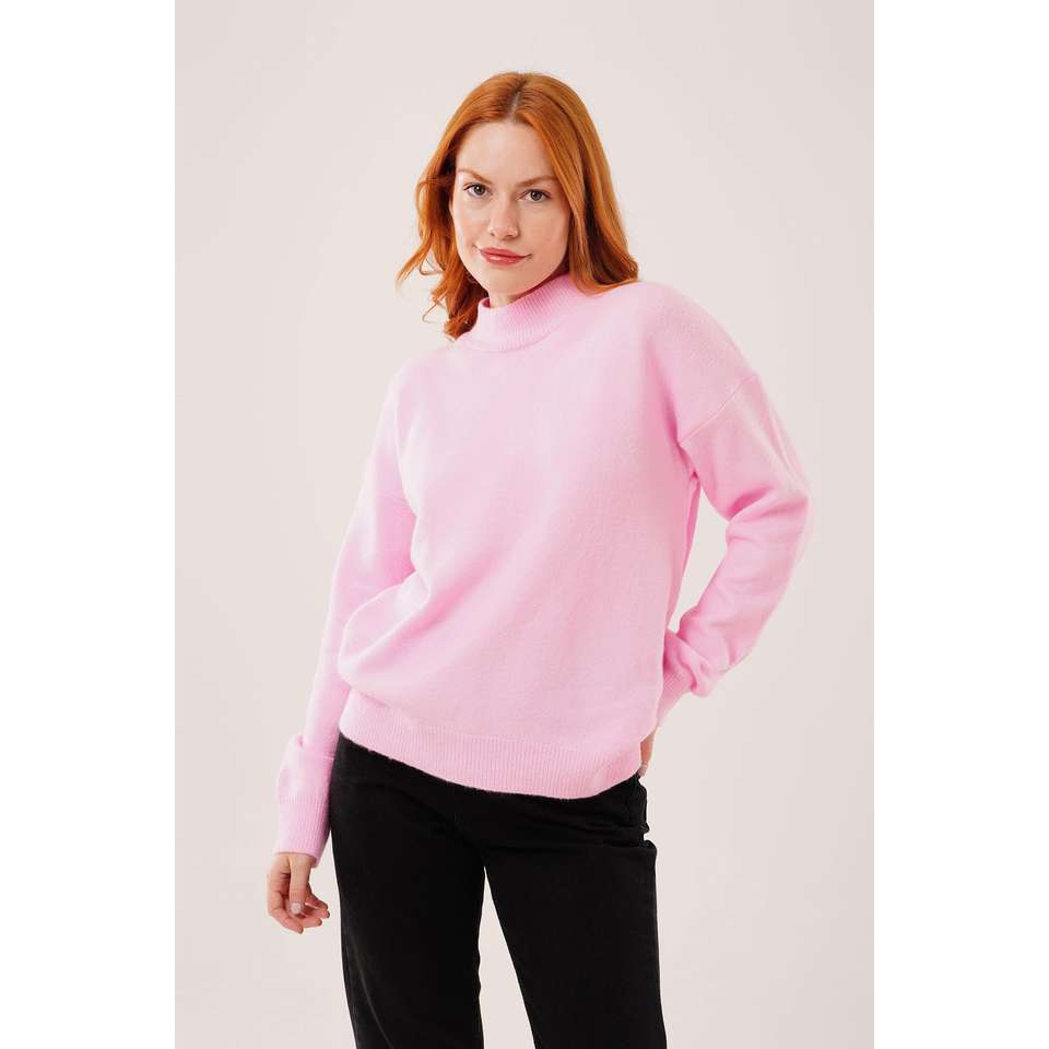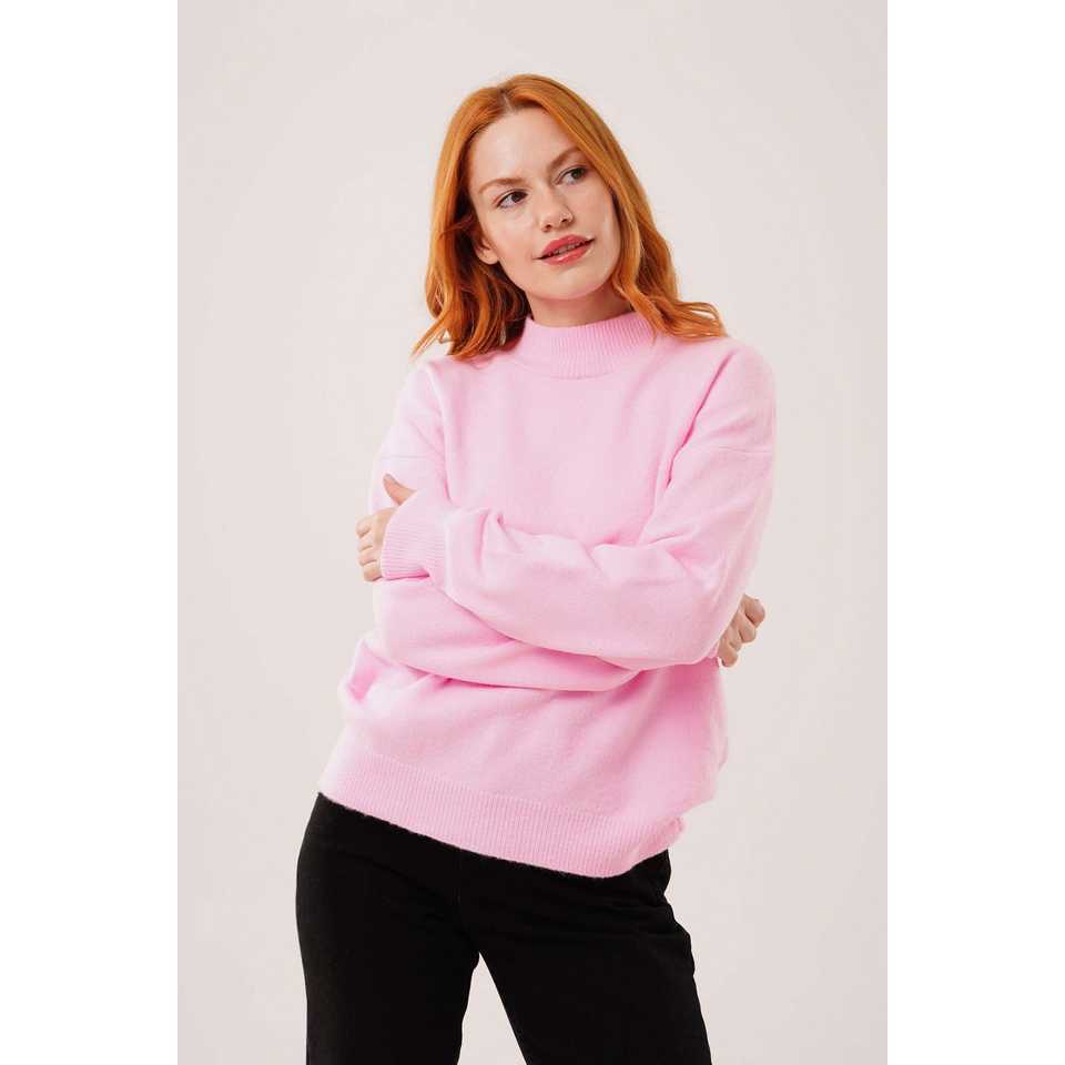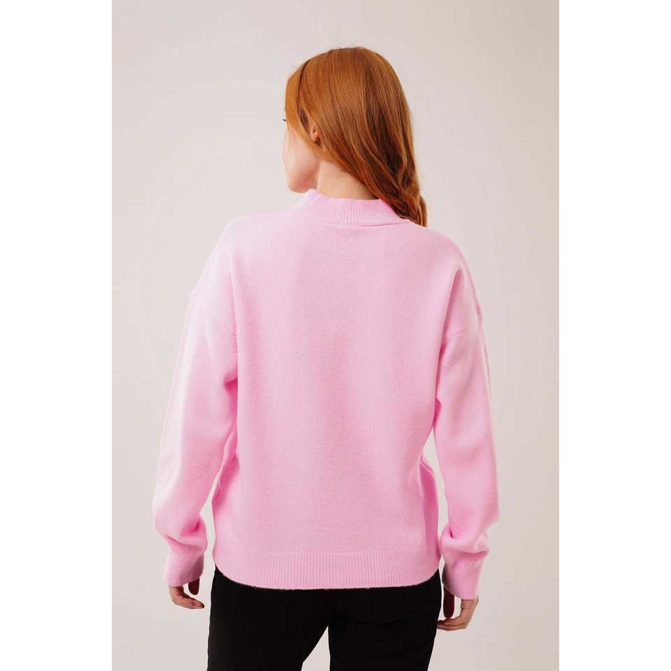 เสื้อสเวตเตอร์ถักสีชมพูสำหรับผู้หญิง แขนยาว คอริบบ์ ป้องกันขนร่วง สไตล์ลำลอง เกรด 14 GG