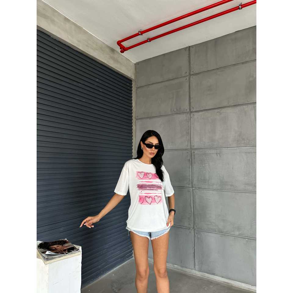 เสื้อยืดผู้หญิงพิมพ์ลายหัวใจ ผ้าฝ้ายเจอร์ซีย์ 100% ระบายอากาศได้ดี แขนปกติ พิมพ์ลายซิลค์สกรีน