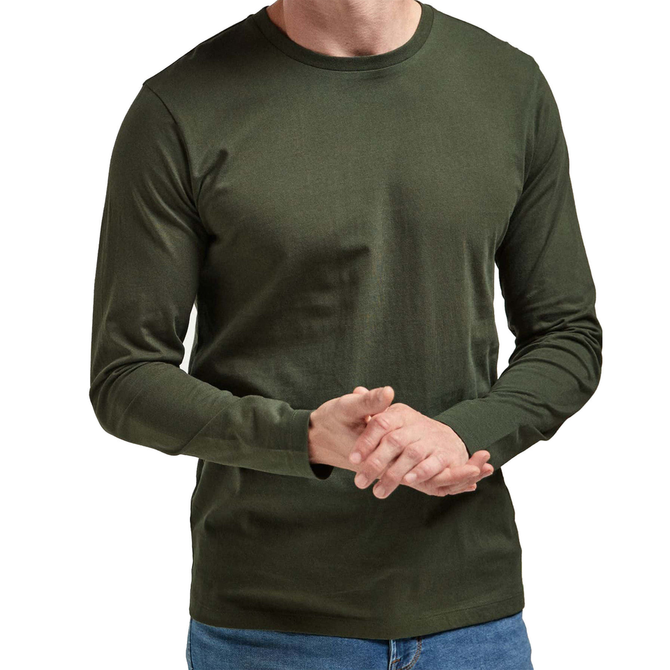 เสื้อยืดแขนยาวผู้ชายแบบพื้นฐาน ออกแบบด้วยผ้าฝ้ายเนื้อนุ่ม ระบายอากาศได้ดี สวมใส่สบาย เหมาะสำหรับใส่ลำลองในชีวิตประจำวัน