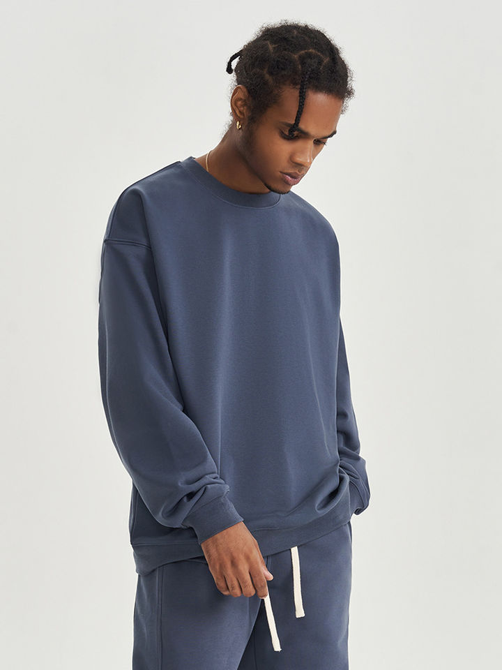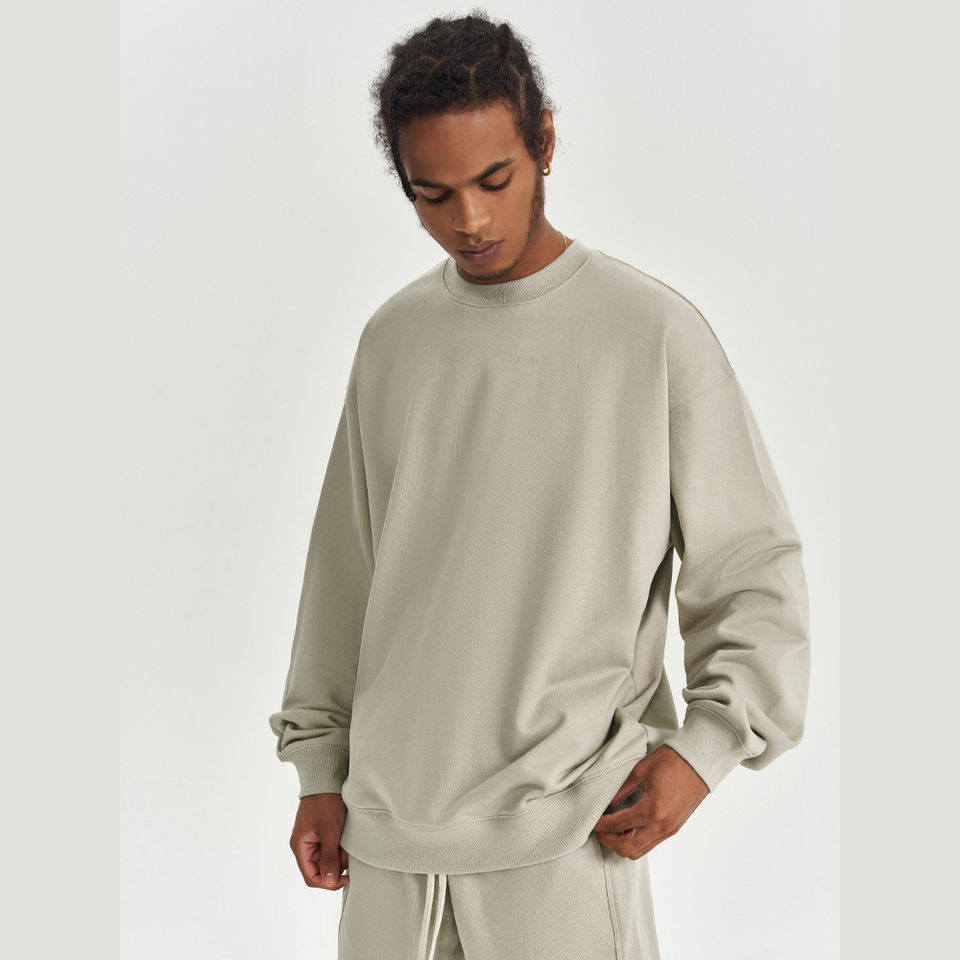 เสื้อสเวตเตอร์คอตตอนแบบผสมสำหรับผู้ชายเสื้อสเวตเตอร์คอกลม450กรัมสำหรับผู้ชาย