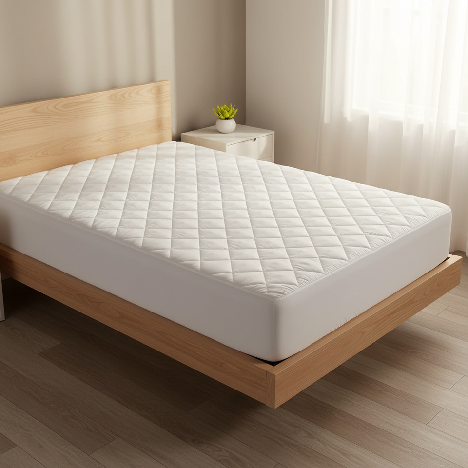 แผ่นรองกันเปื้อนแบบเย็บติดกัน ป้องกันสารก่อภูมิแพ้ หนา 3 นิ้ว ขนาดเตียงคู่ สีขาว