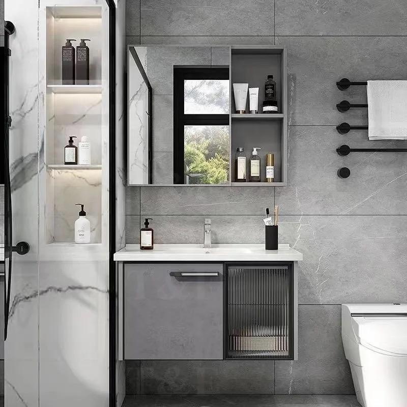 ตู้อ่างล้างหน้าไม้อัดวิลล่าติดผนัง PVC เฟอร์นิเจอร์อ่างล้างหน้าติดผนังทนทานทันสมัย