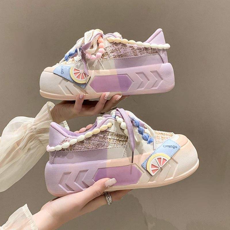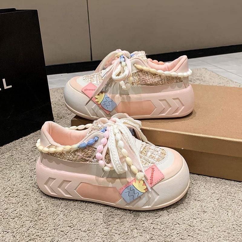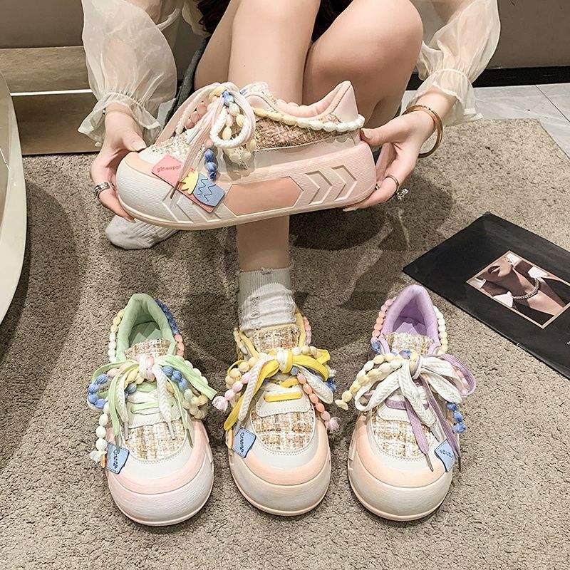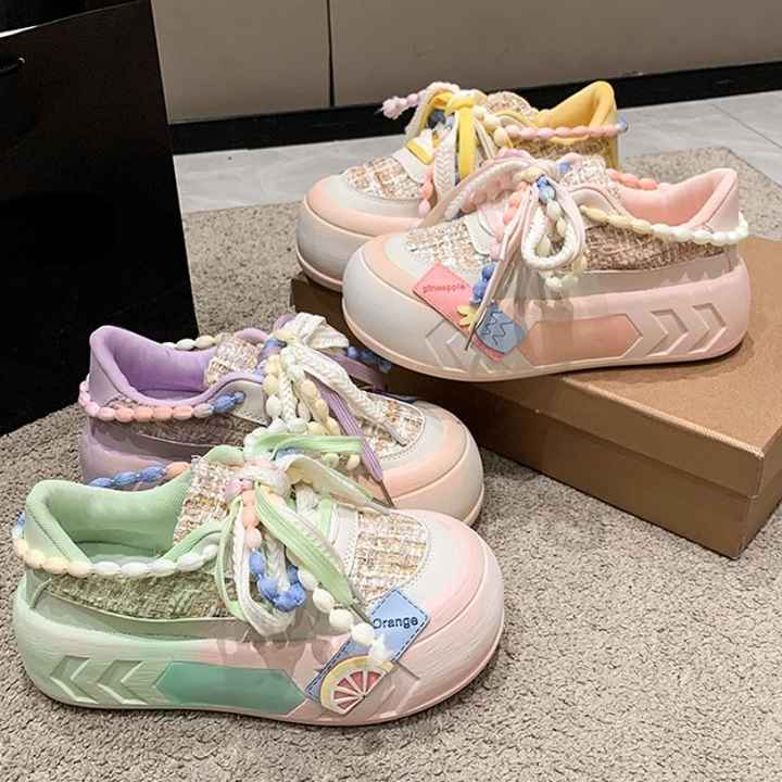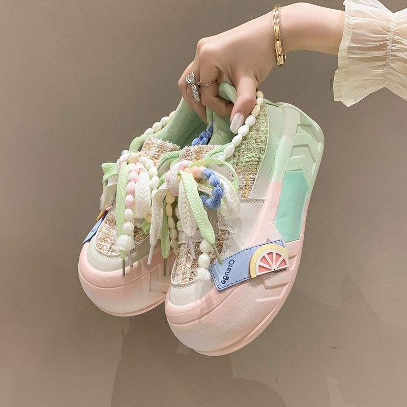 รองเท้าวิ่งพื้นหนาพิเศษสำหรับผู้หญิง, รองเท้าวิ่งพื้นหนารองเท้าผ้าใบผู้หญิง2025พื้นรองเท้าหนาสีชมพู/เขียว
