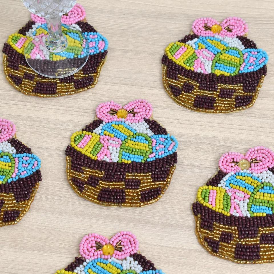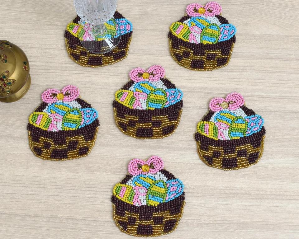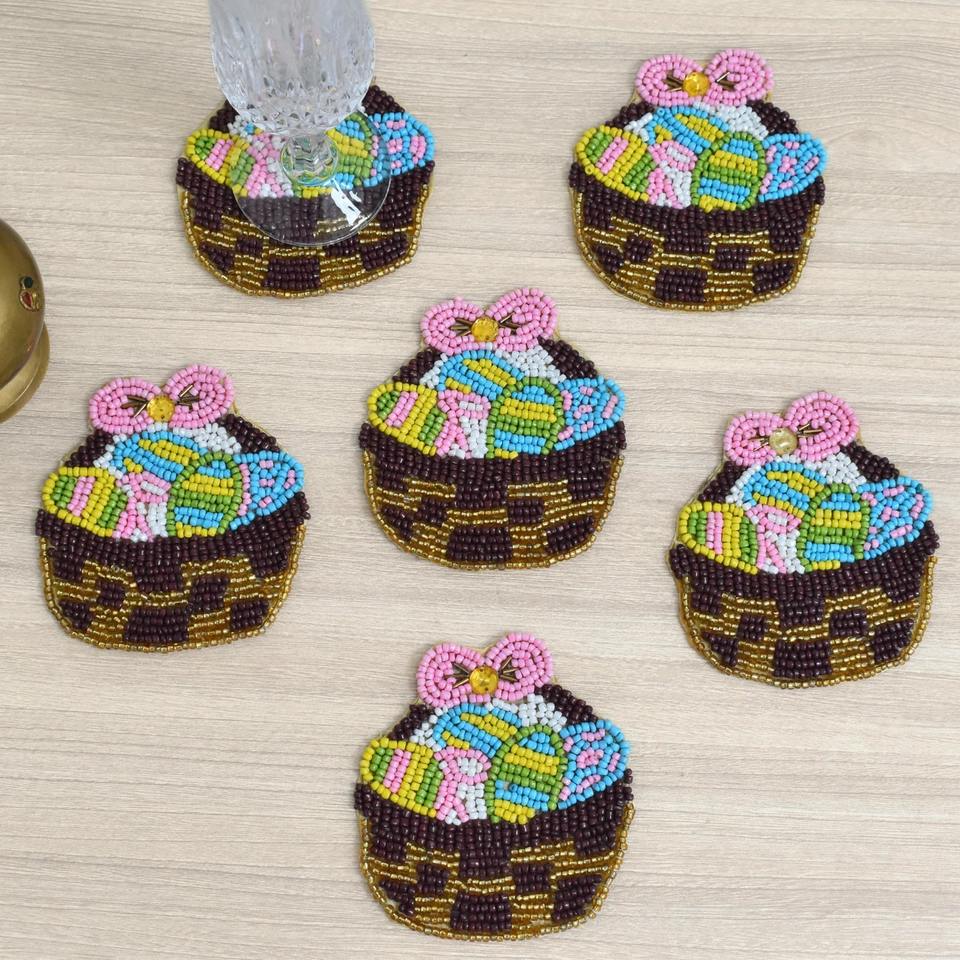 แผ่นรองแก้วทำมือประดับลูกปัดทรงกลม สไตล์โมเดิร์น เป็นมิตรกับสิ่งแวดล้อม สำหรับโต๊ะอาหารในครัว/แผ่นรองจาน รับทำสีและโลโก้ตามสั่ง ขายส่ง