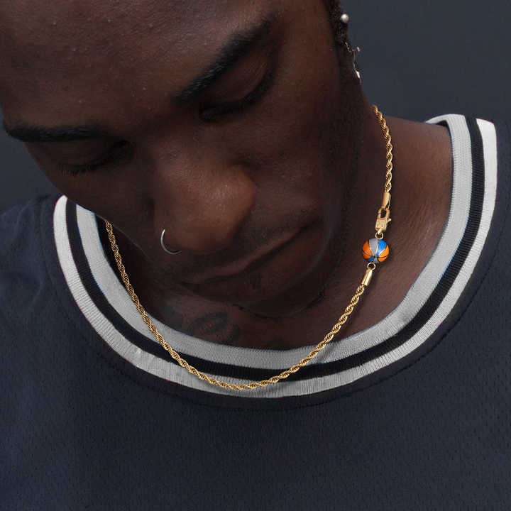 สร้อยคอรูปบาสเก็ตบอลสำหรับผู้ชาย สร้อยสแตนเลส สไตล์สปอร์ต จี้รูปแผ่นน้ำหนักแบบกำหนดเอง จี้รูปลูกบาสเก็ตบอล 3 มิติ