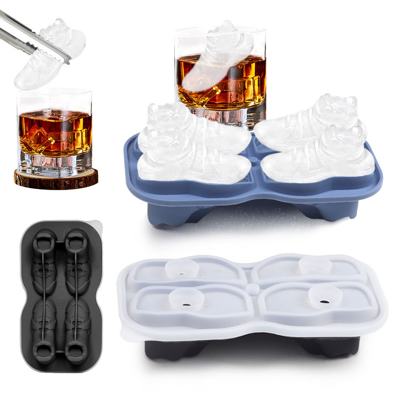 รองเท้าบาสเก็ตบอลรูปร่างถาดน้ําแข็งซิลิโคนทรงกลมลูกบอลน้ําแข็งแม่พิมพ์สําหรับวันเกม, วิสกี้, ค็อกเทล