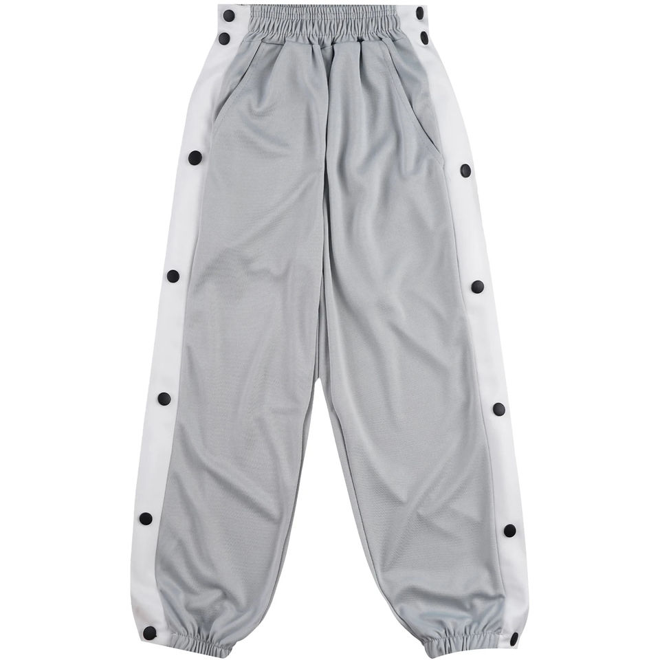 กางเกงกีฬาแฟชั่นสีหมอกสไตล์บาสเก็ตบอลกางเกงลำลองทรงหลวมแบบเปิดด้านข้างของผู้ชาย