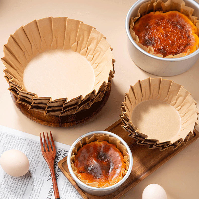 กระดาษรองอบซิลิโคนแบบวงกลมสำหรับทำขนมบาสก์ ขนาด 4 6 8 นิ้ว แบบใช้แล้วทิ้ง สำหรับร้านเบเกอรี่