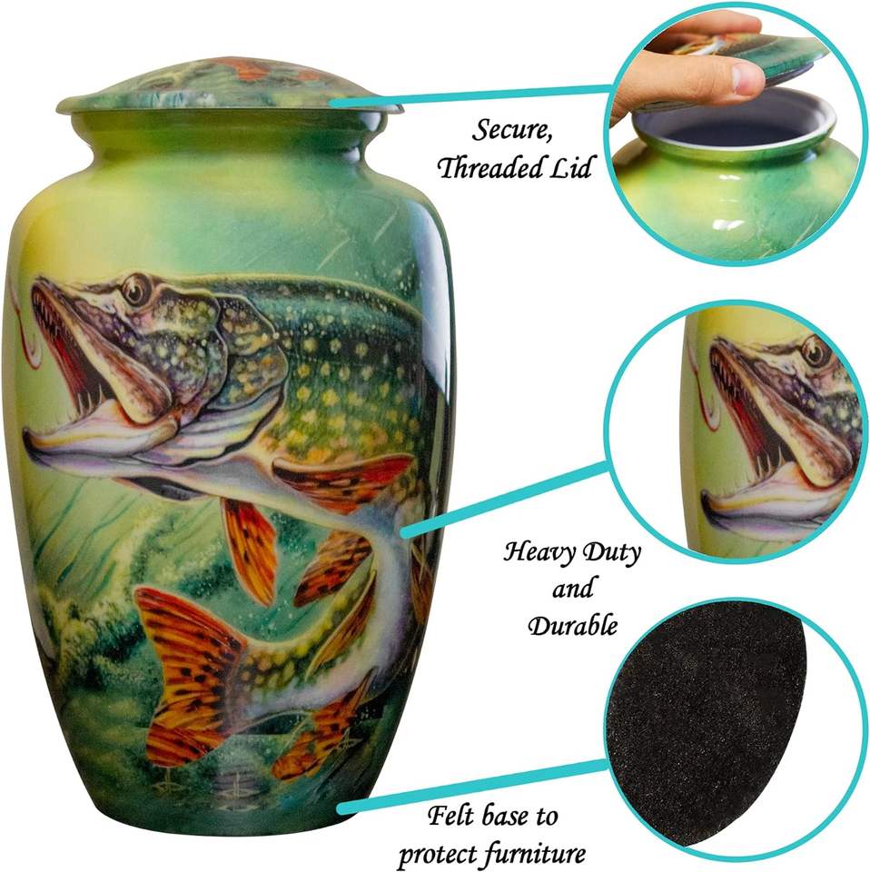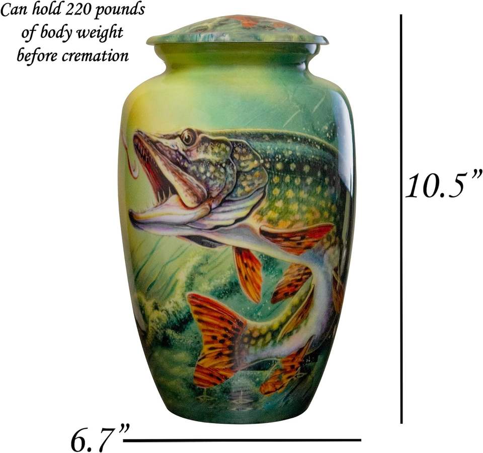 Bass Fish Urn Fishing Cremation Personalized Large Funeral Urn with Keepsake and Velvet Bags