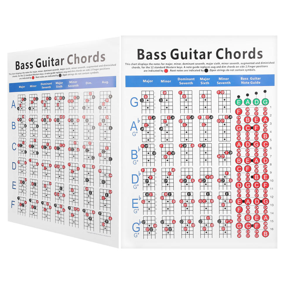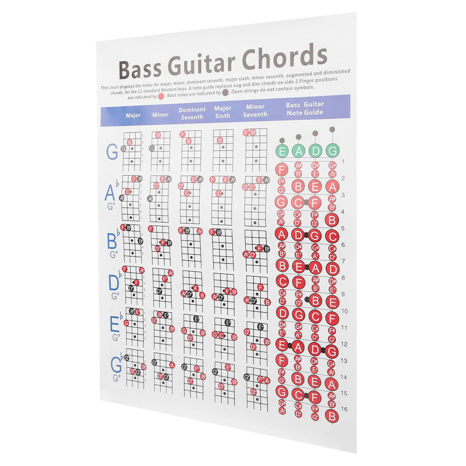 กีตาร์เบสคอร์ดคอร์ดกีตาร์4-สตริงอ้างอิงไฟฟ้าเครื่องมือออกกำลังกายกระดาษสำหรับผู้เริ่มต้น