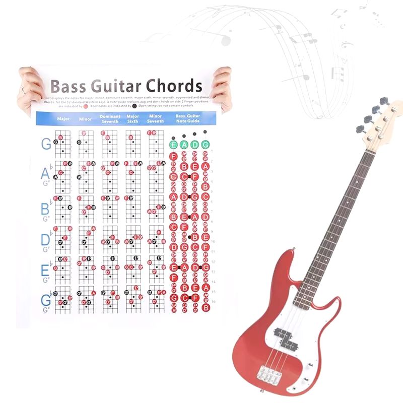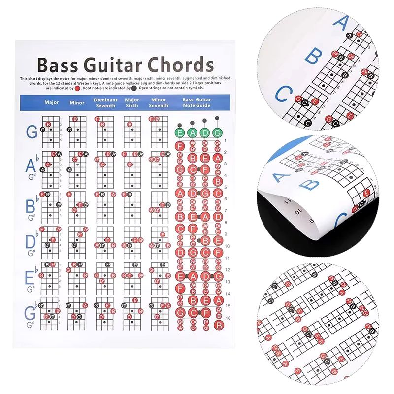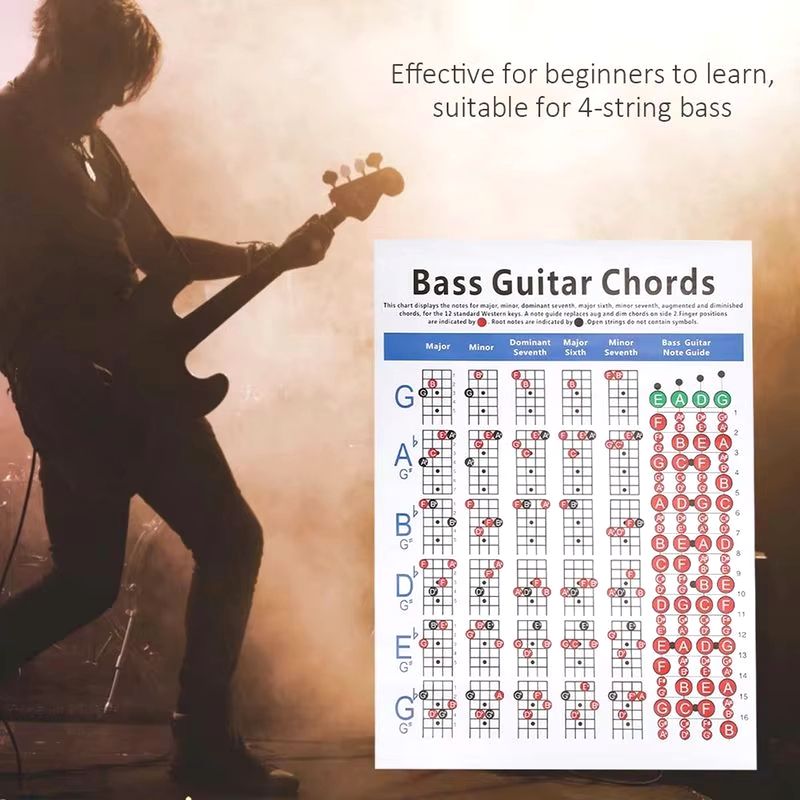 แผนภูมิคอร์ดกีตาร์เบส 4 สาย สำหรับผู้เริ่มต้น ฝึกนิ้ว อุปกรณ์เสริมเครื่องดนตรี