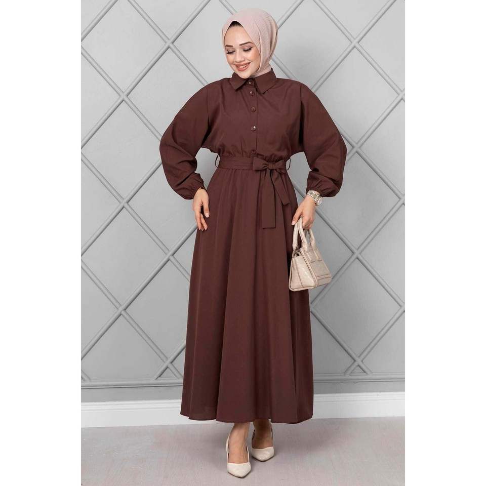 ชุดฮิญาบยาวติดกระดุมแขนค้างคาวสีน้ำตาล