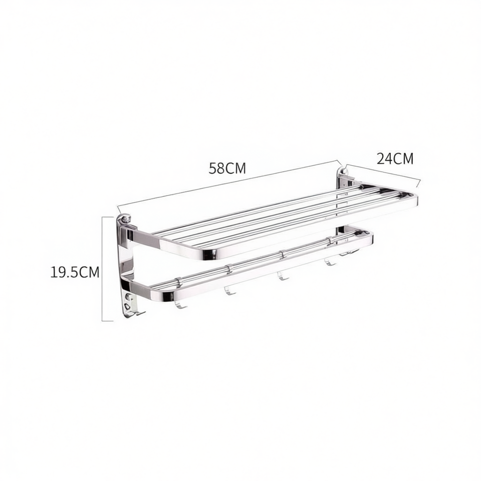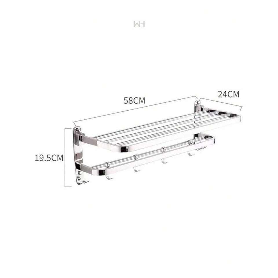 ราวแขวนผ้าขนหนูสแตนเลสแบบติดผนัง พับได้ พร้อมระบบทำความร้อน ความยาว 58 ซม. สำหรับบ้าน โรงแรม ห้องน้ำ แบบโครเมียมสองชั้นทันสมัย