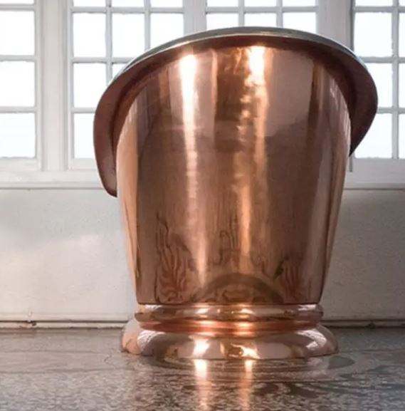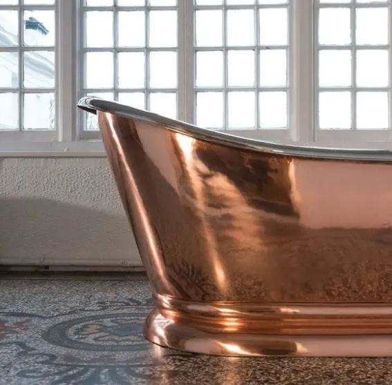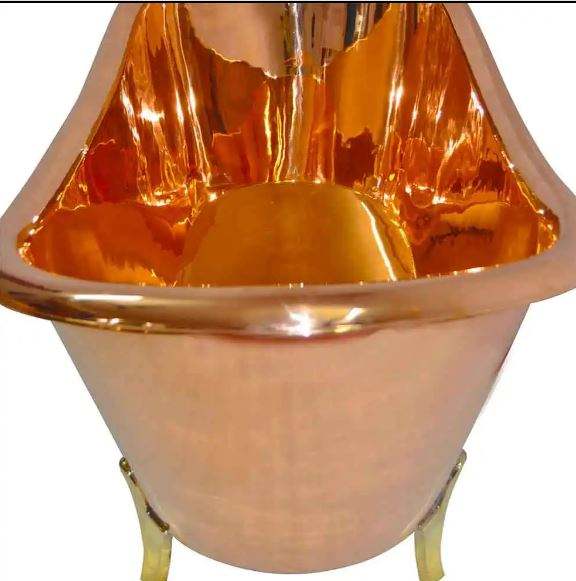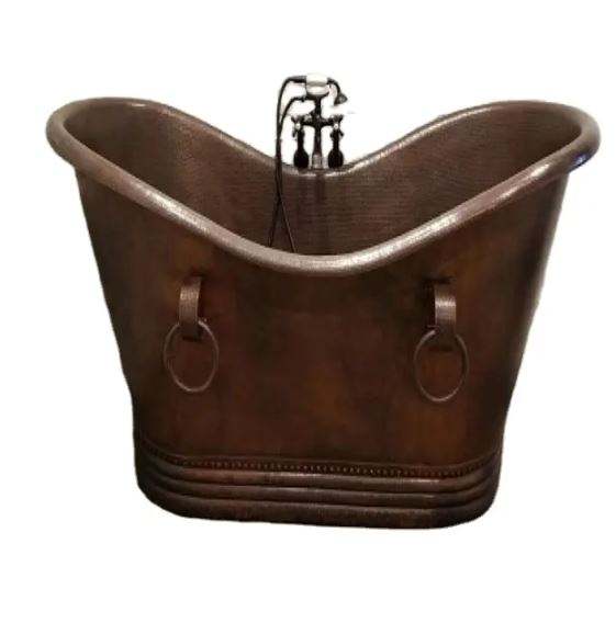 อ่างอาบน้ำแบบตั้งพื้นพร้อมฐานรองแบบมีขอบ ดีไซน์โบราณทำมือทันสมัย ห้องน้ำทองแดงขัดเงา ราคาถูก