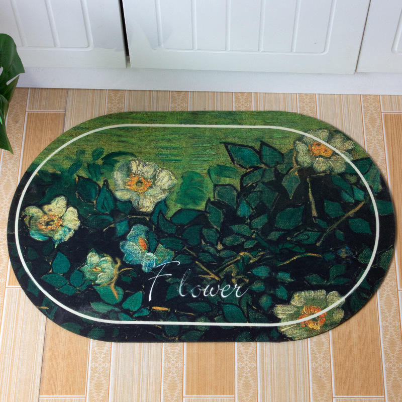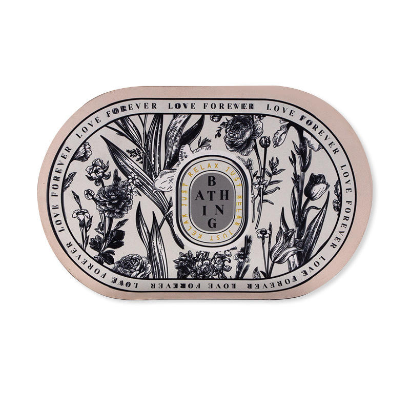แผ่นรองอาบน้ำรูปวงรีจากดินไดอะตอม ลายดอกไม้ ดูดซับน้ำได้ดี มีแผ่นยางรองด้านหลัง สำหรับห้องน้ำ