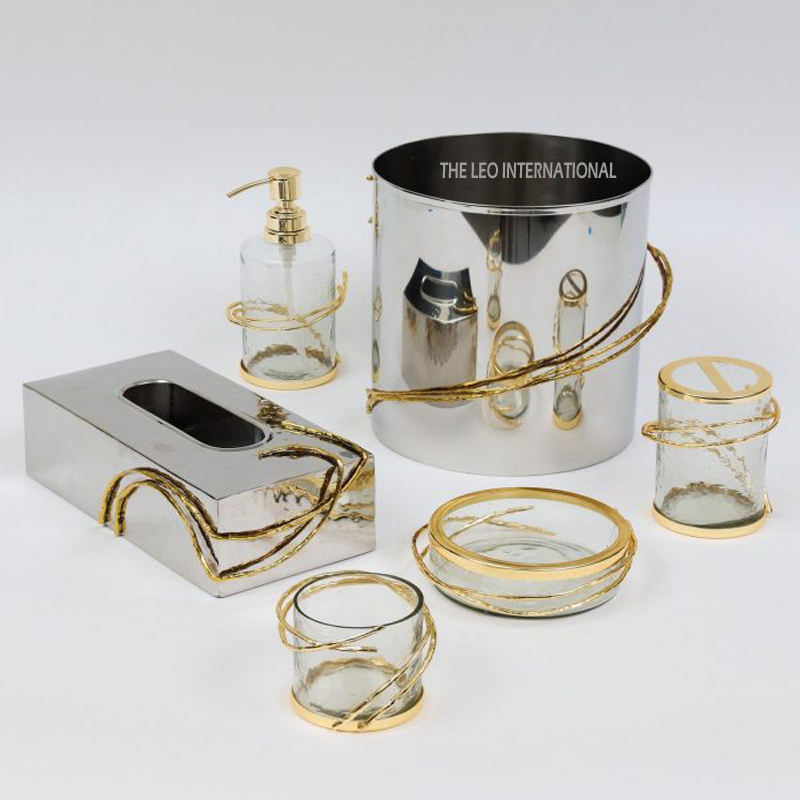 ชุดอุปกรณ์ห้องน้ำพร้อมที่กดสบู่จำนวน6ชิ้นพร้อมที่ใส่กระดาษชำระที่วางสบู่ก้อนสำลีสำหรับตกแต่งห้องน้ำ