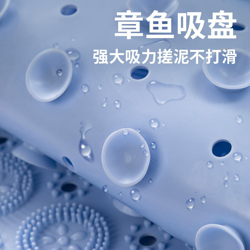 เสื่อกันลื่นในห้องน้ำทรงกลมสีฟ้าใยโพลีเอสเตอร์ดีไซน์ทันสมัยสำหรับใช้กับพื้นห้องน้ำฝักบัว