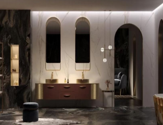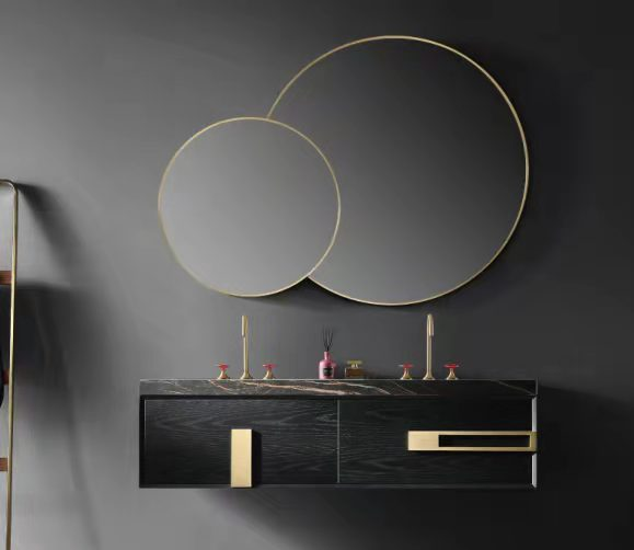Classic Apartment Bathroom Vanity Cabinet Time Display Touch Switch Wall Mounted Rectangular Marble Ceramic Glass Acrylic