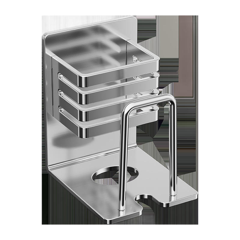 ที่วางไดร์เป่าผมในห้องน้ำแบบติดผนัง ชั้นวางของสแตนเลสพร้อมที่วางแก้วสำหรับแปรงสีฟันและอุปกรณ์เสริม