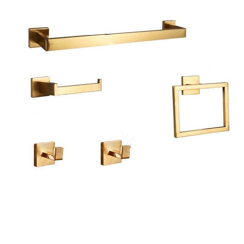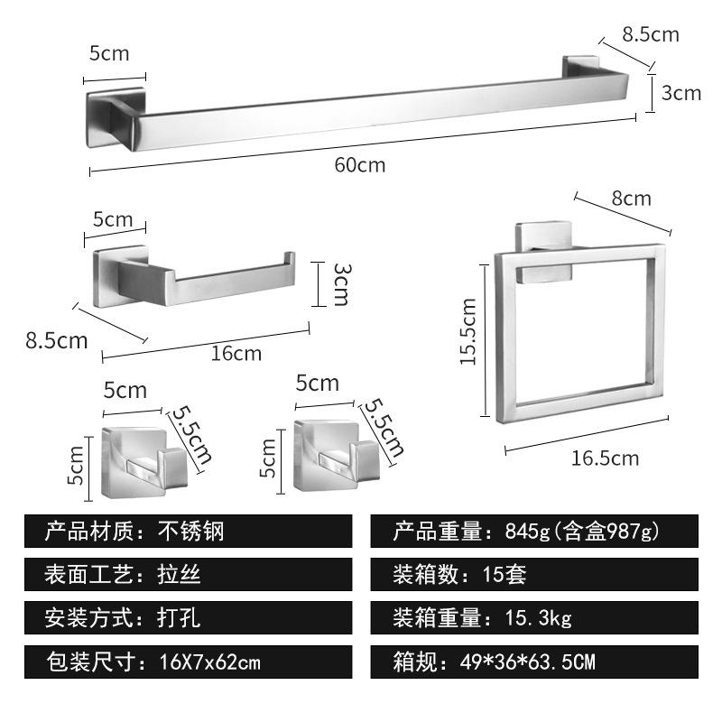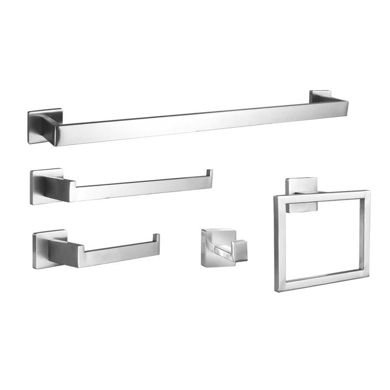 ชุดอุปกรณ์สแตนเลสสำหรับห้องน้ำ, ราวแขวนผ้าเช็ดตัว5ชิ้นราวแขวนกระดาษชำระแขวนผนังชุดอุปกรณ์สำหรับห้องน้ำ